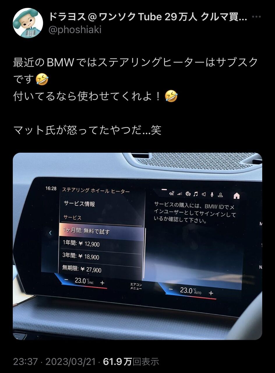 【画像あり】高級外車さん「ん?ハンドル暖かくしてほしいんか?w ほな1年で¥12,900なw」